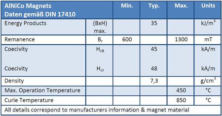 Raw materials for Aluminium-Nickel-Cobalt Magnets (AlNiCo) are aluminium, nickel, cobalt, iron, copper and titanium. Aluminium-Nickel-Cobalt Magnets are produced in a sintering – casting procedure. The hard material needs to be processed by grinding to be cost effective. Due to its specifications, the best dimension is a remarkably longer length than its diameter. In combination with reed sensors / switches we recommend a length / diameter ratio of more than 4. AlNiCo magnets have excellent temperature stability. Cylindrical AlNiCo magnets can be used with all Standex Electronics reed sensors / switches without any problems.